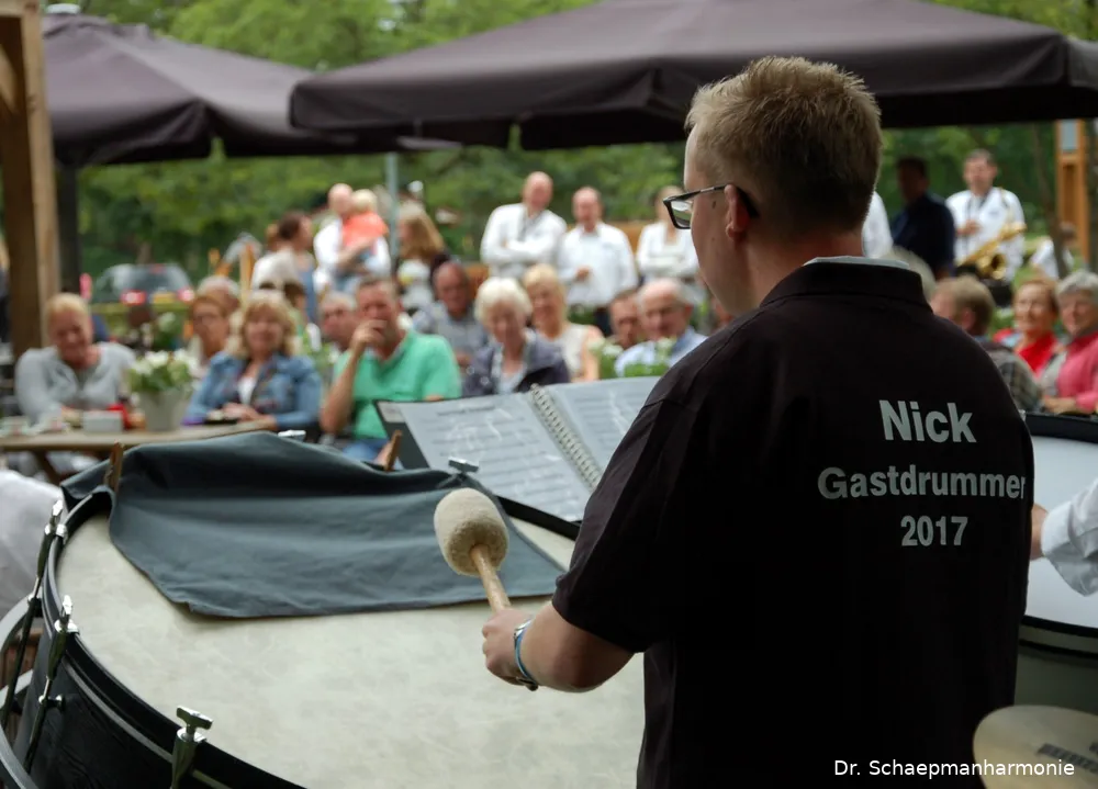 Nick had zich aangemeld en heeft een geweldige avond gehad door het meespelen met slagwerkgroep en orkest. De Dr. Schaepmanharmonie hoopt dat de toon hiermee gezet is, en dat volgend jaar, want dit initiatief verdient een vervolg, nog meer mensen met een verstandelijke beperking meedoen. Muzikale aanleg is niet nodig, plezier hebben in muziek maken (of luisteren) is alles wat telt. Volgend jaar zal tijdig via de pers bekend worden gemaakt hoe het eruit gaat zien, de verschillende instellingen voor gehandicaptenzorg zullen ook dan weer persoonlijk benaderd gaan worden. Wie nu al vragen heeft, kan die het beste stellen per mail ( [email protected] ).