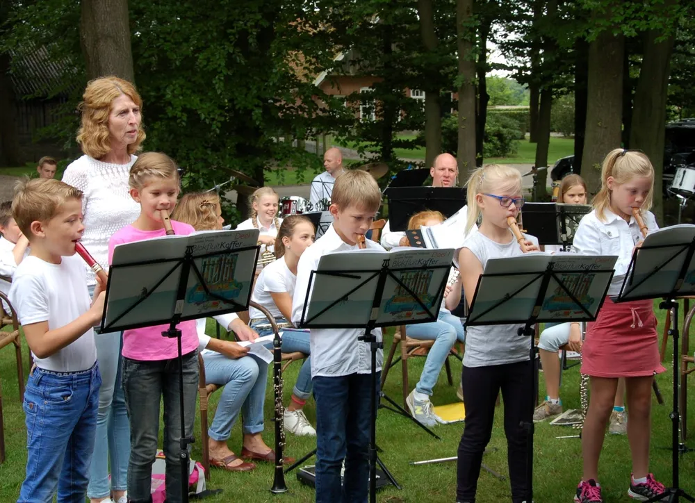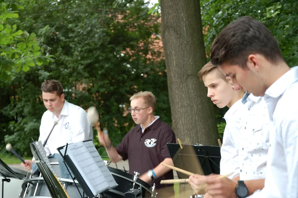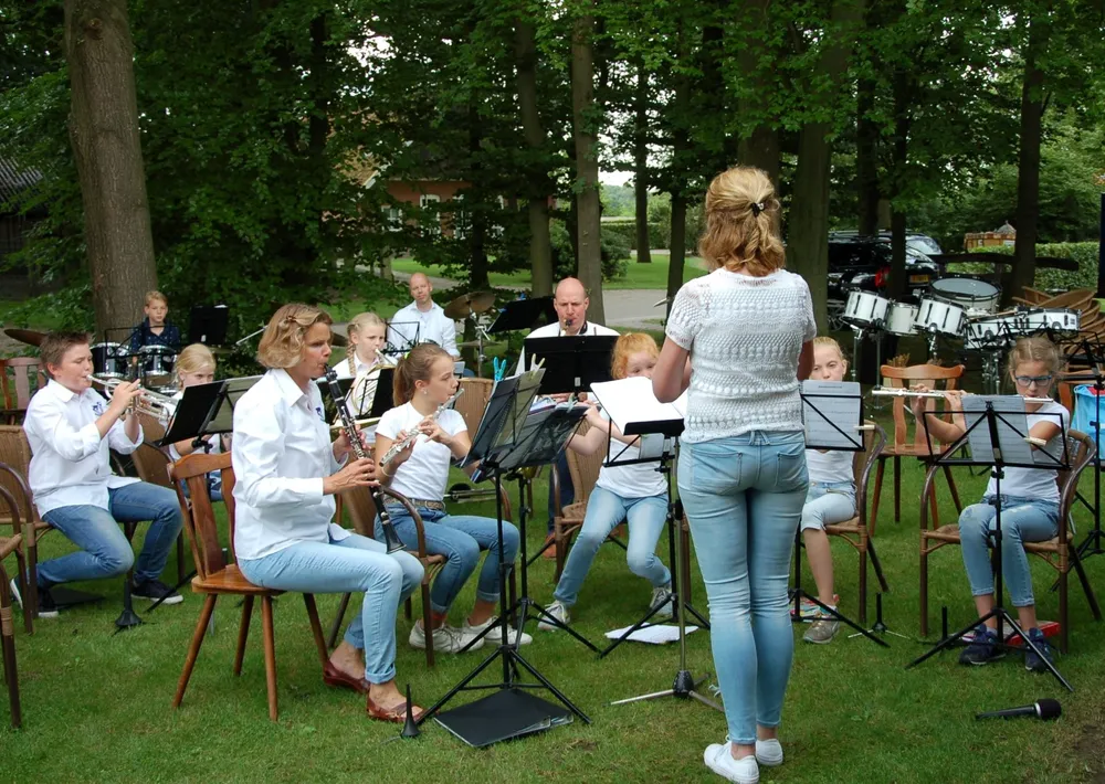 Onder prima weersomstandigheden lieten alle onderdelen van de muziekvereniging zich van hun beste kant zien en horen. Om 18.00 uur werd afgetrapt door de blokfluitgroep. Onder leiding van Dianne Eising lieten zij leuke en bekende melodieën horen. Er werd met zichtbaar plezier gespeeld en dat er flink geoefend was, was goed te merken. Aansluitend speelde het C-orkest, zij lieten horen dat je na soms nog maar een half jaar les al hele leuke muziek samen kunt maken. Het B-orkest, net als het C-orkest geleid door Dianne Eising, bestaat uit al wat meer gevorderde muzikanten. Ook zij speelden met veel inzet en lieten horen dat ze al wat meer ervaring in het samenspelen hebben en wat meer beheersing van hun instrument bezitten.