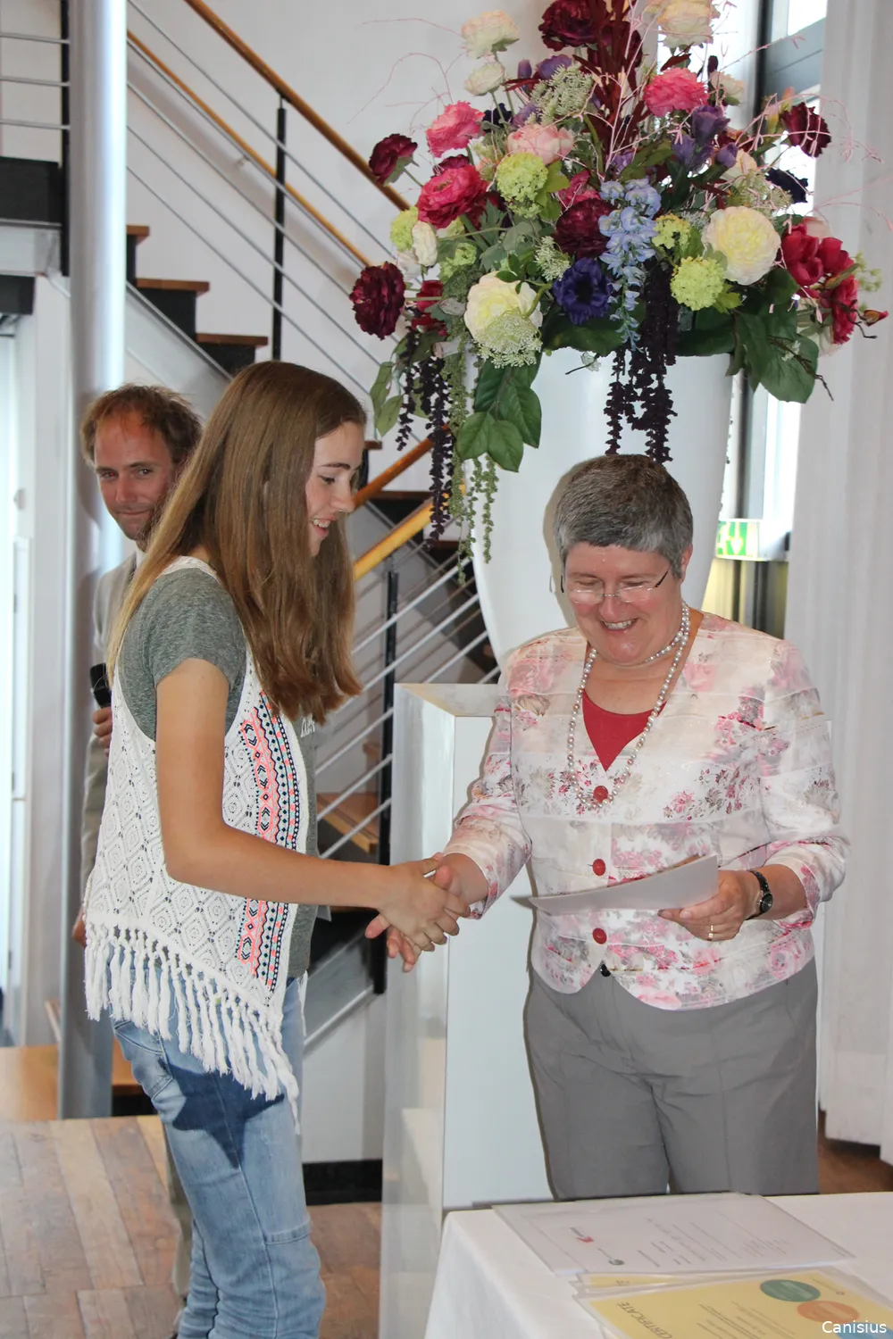 Uit handen van Sabine Nolke, ambassadrice namens Canada in Nederland, hebben gisteravond 24 leerlingen van Canisius in Tubbergen een certificaat ontvangen.