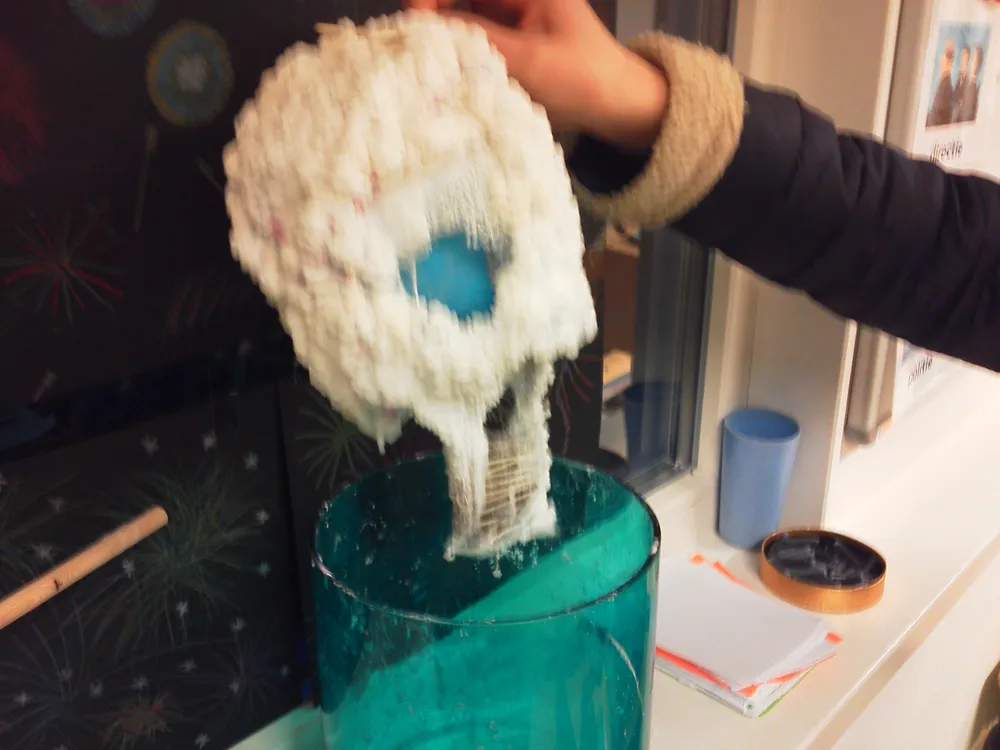 Een aantal maanden geleden was de zogeheten Zoutbus langs geweest en daarna startte het project zoutkristallen in beide groepen 8 van basisschool De Wiekslag in Tubbergen. Er moest een werkstuk worden gemaakt in groepjes van 2 of 3 leerlingen, waarna deze in zout water werd gezet. Iedere morgen keken de leerlingen of er al zoutkristallen op hun werkstuk waren gekomen, er werden geregeld foto's gemaakt en ook het logboek werd iedere week een aantal keren bijgewerkt.
