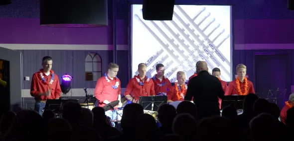Na het jeugdorkest nam Gerrit Kelder, met zijn jeugdslagwerkgroep, het dirigentenstokje over. De slagwerkers speelden achtereenvolgensSecond trackenConcert debuut. Hoewel de spanning op de gezichten van de jonge muzikanten af te lezen was, ging het optreden vlekkeloos.