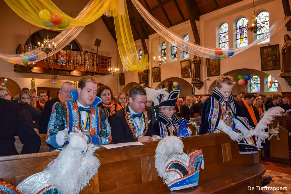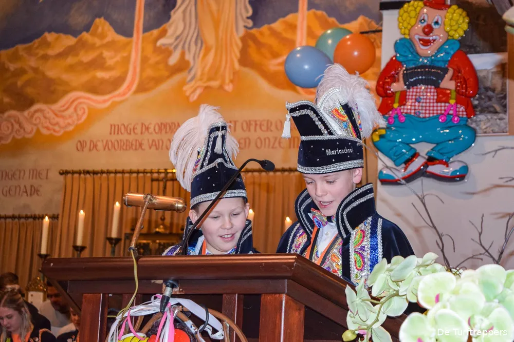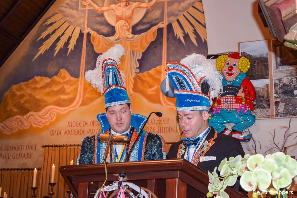 Een groot aantal kinderen was in carnavalskleding naar de kerk gekomen. Samen met prins Guido, adjudant Alwin, jeugdhoogheden Ted en Siem, de Raad van Elf, dansmariekes, damesraad en oud-hoogheden zorgden ze voor veel vrolijkheid in de kerk.