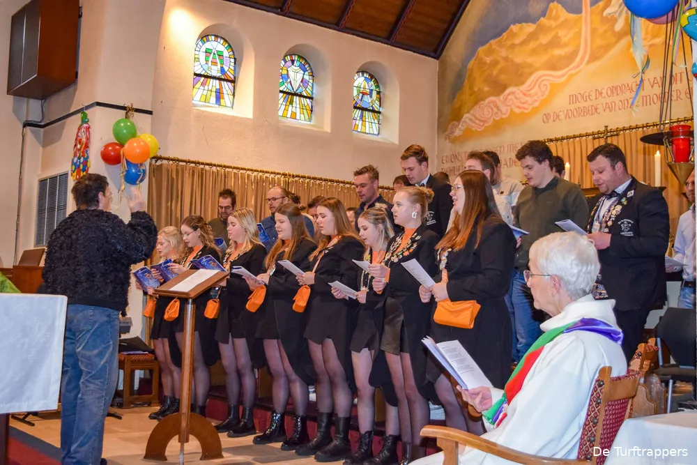 Onder de klanken van dweilorkest de Haarschutters stroomde de Pancratiuskerk in Langeveen zondag 18 januari vol Turftrappers.