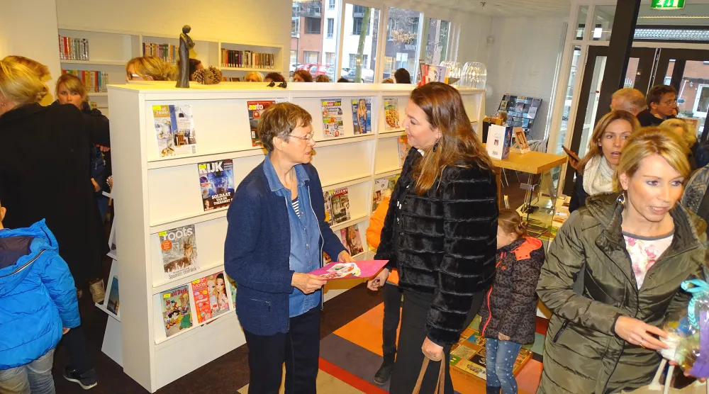Niet alleen ontving Kempers vele presentjes, ze deelde er ook wat uit aan 4 vaste bibliotheekgangers: Suus Paus, Bianca Droste, Truus Ankoné en Annie Hemmer.