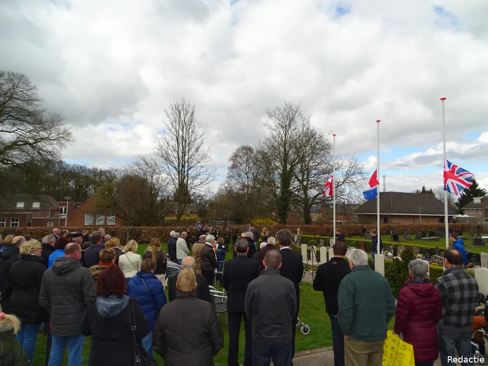 Hierna volgden de volksliederen van Canada, Engeland en Nederland. Tijdens het spelen van die volksliederen werden de vlaggen van respectievelijk Canada, Engeland en Nederland door 3 leerlingen naar volstok gehesen. Vervolgens droeg een leerling een gedicht voor over de oorlog, waarna er een korte toelichting volgde over de vliegeniersgraven en de heer J.H. Lamberts en de heer J. Velnaar.