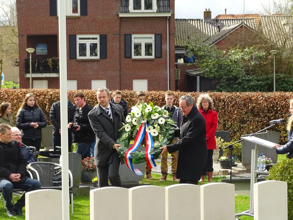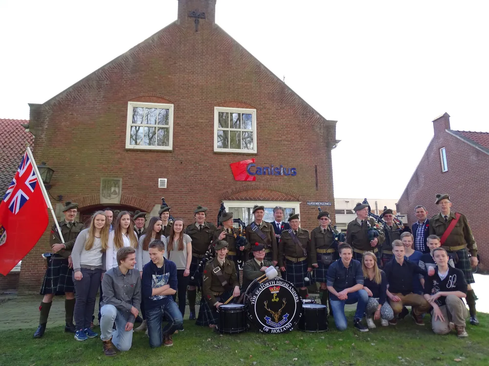 Gisteren was het dan zover. De leerlingen moesten op tijd op het Canisius zijn om de laatste dingen te regelen, door te nemen zodat de herdenking vlekkeloos zou verlopen. Vanuit het Canisius gingen de genodigden plus de leerlingen achter de pipe band (doedelzakken) aan naar de begraafplaats. Op de begraafplaats vond de herdenking plaats en nadat iedereen zijn plekje had gevonden werd er begonnen met een woord van welkom. Daarna deed burgemeester Stegers een toespraak. Hij vertelde o.a. over de ervaring van zijn schoonvader met de oorlog.