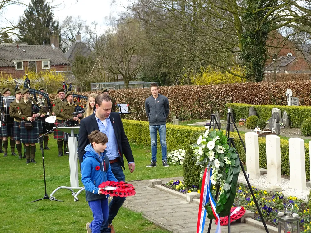 Ook vond er een kranslegging plaats; op verschillende plaatsen op de begraafplaats werden kransen gelegd. De eerste krans werd gelegd namens de gemeente Tubbergen en daarna volgde een krans namens het Canisius, waarna anderen in de gelegenheid werden gestel een krans of bloemetje te leggen. Tijdens de kranslegging brachten de Seaforth Highlanders enkele nummers ten gehore.