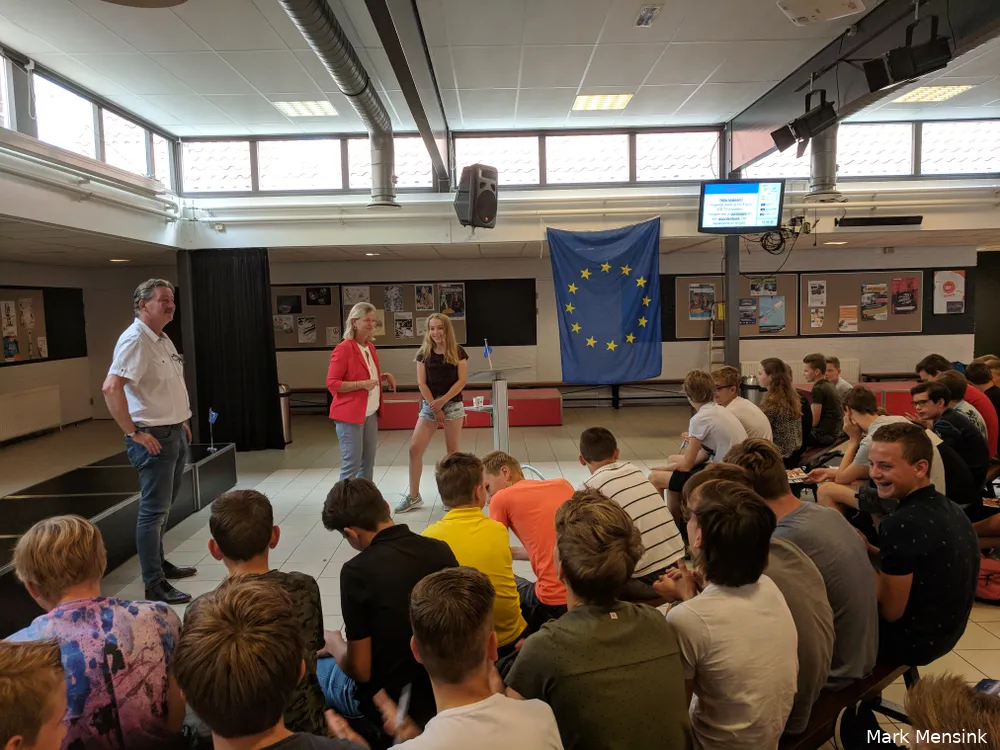 Het welbekende Europarlementslid, door boeren weleens liefkozend 'oons Annie' genoemd, sprak vanochtend met leerlingen. Ze legde de ruim 100 jongeren in zo'n anderhalf uur tijd de werking van de Europese Unie uit en ging ook met hen in debat over de samenwerking op het gebied van landbouw, energie, duurzaamheid, vrede, veiligheid, medicijnen en meer.