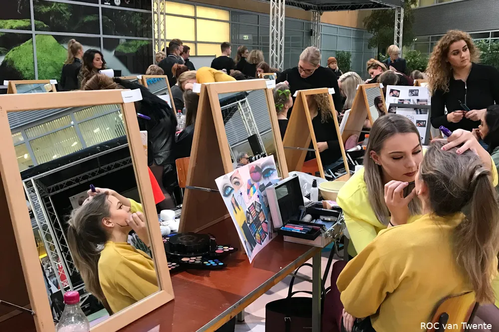 Veel creativiteit gistermiddag 25 januari te zien in de centrale hal van ROC van Twente. Hier streden ruim 85 studenten van de opleidingen allround schoonheidsspecialist (niveau 4) en schoonheidsspecialist (niveau 3) onderling en tegen studenten van de opleidingen ondernemend kapper (niveau 4) en kapper (niveau 3) om de felbegeerde make-up awards.