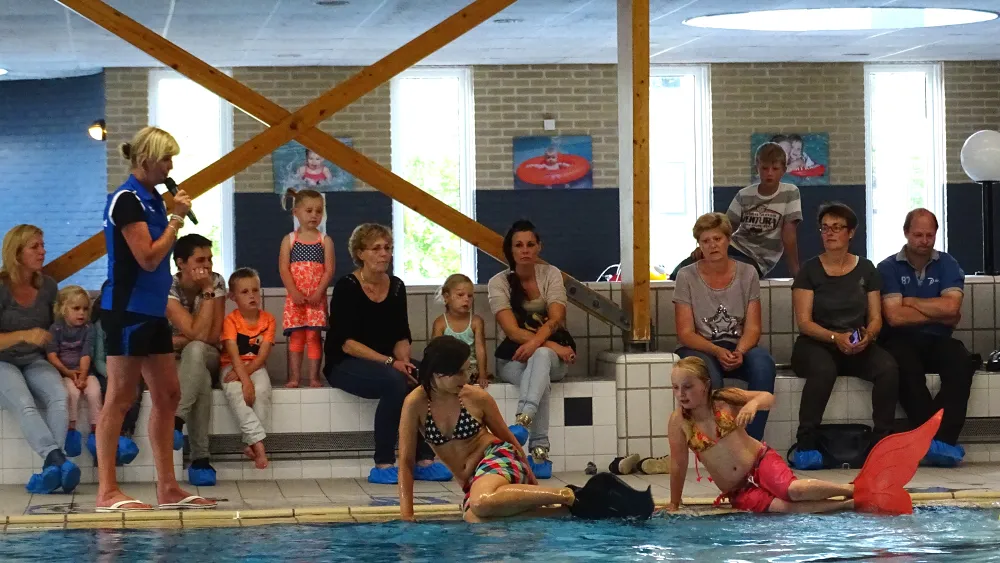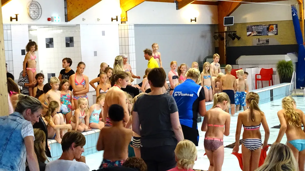 Elke's moeder, Irene Bies, is zwemlerares en gaf vanavond via een microfoon de nodige instructies. Ze legde bovendien uit dat, mits er genoeg animo voor is, ook gedacht wordt aan een speciale cursus voor kinderen die het zwemmen met zo'n vin compleet onder de knie willen krijgen. "Het is de bedoeling dit nog voor de zomervakantie te gaan aanbieden. Dat zal op 2 dagen zijn, maar dat moeten we wel nog even inpassen in het bestaande rooster. En dan krijgen de deelnemertjes natuurlijk na afloop een certificaat."