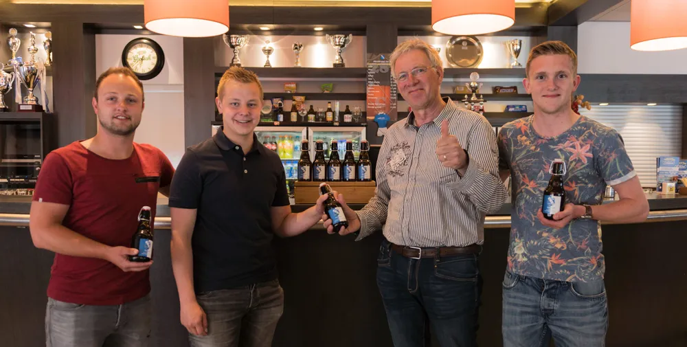 De voetballers hebben een speciaal biertje gebrouwen voor de voetbalvereniging, waarvan het eerste exemplaar afgelopen vrijdag overhandigd werd aan voorzitter Hans Hofste. "Een uniek idee dat deze voetbalclub nog nooit eerder mee heeft mogen maken", aldus Hofsté.