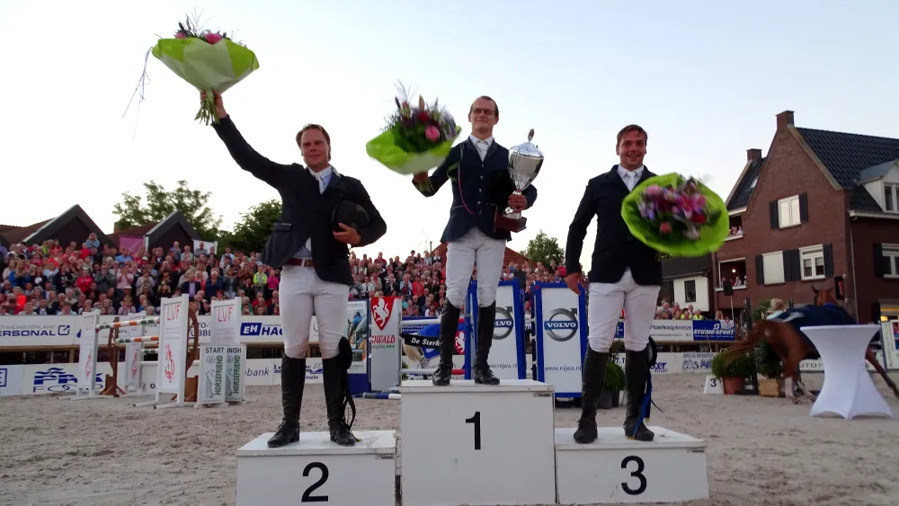 In de slotronde versloegTen Cateals 4e deelnemer de overgebleven combinaties in 29.68 seconden. Dat deed hij op de rug van de 10-jarige schimmelhengst Mr Blue. Bas van der Aa uit Albergen was de nummer 2 met zijn vosruin Goldfire na 0,1 seconde langzamer over de finish te komen dan de nummer 1, terwijl publiekslieveling Ben Schröder met zijn fraai springende ruin Complimento enkele balkjes eraf tikte. Peter Olthof uit Langeveen werd 3e met Esminka, een schimmelmerrie van Clinton/Berlin.