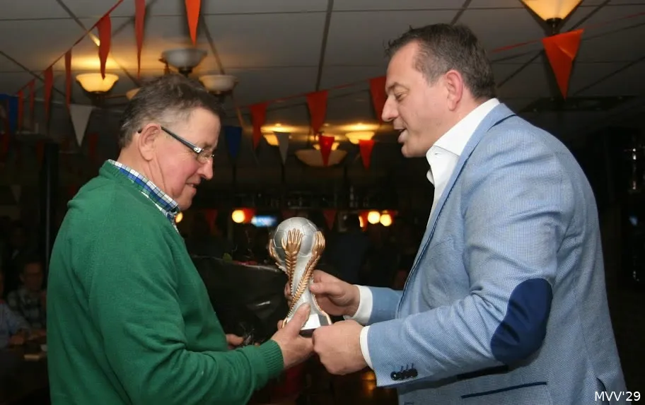 Bij het officiële gedeelte nam het bestuur afscheid van een aantal vrijwilligers. MVV'29 vindt het van groot belang dat er op een juiste afscheid wordt genomen van mensen die zo lang actief zijn geweest bij de club. Dit jaar zijn 12 vrijwilligers gestopt. Speciale aandacht verdienden Bas Lenferink (7 jaar), Lenie Lamtink (20 jaar) en Eddy Weiss (25 jaar). Lenie en Eddy ontvingen een mooie bos bloemen en een waardebon. Eerstgenoemde kon helaas niet aanwezig zijn. Bas ontvangt op een ander moment zijn beloning voor getoonde inzet.
