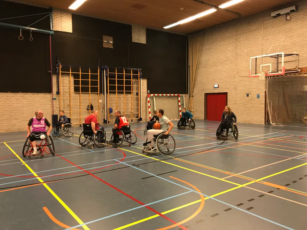 Ook het team van de rolstoelbasketballers was goed vertegenwoordigd op het toernooi. Voor de leden die regulier basketbal spelen was de keuze vrij om tussendoor een potje met de 'rollers' mee te doen. Erg leuk om te zien dat veel teams hier gehoor aan hebben gegeven. Zo is iedereen ruim 2 uur lekker bezig geweest, wellicht ook met de goede voornemens in het achterhoofd.