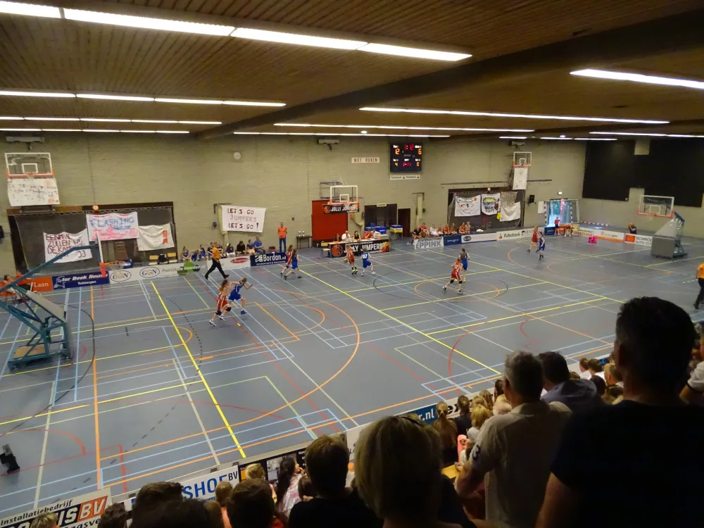 Bij het eindsignaal ontplofte de Tubbergse sporthal bijna en kon de vlag uit want Jolly Jumpers werd door een 61-55 overwinning kampioen van Nederland. Ook een groot compliment voor de meiden van Flashing Heiloo. Het team speelde erg leuk basketbal en ook zij hadden zeker recht op het goud, maar er kan er maar eentje winnen.