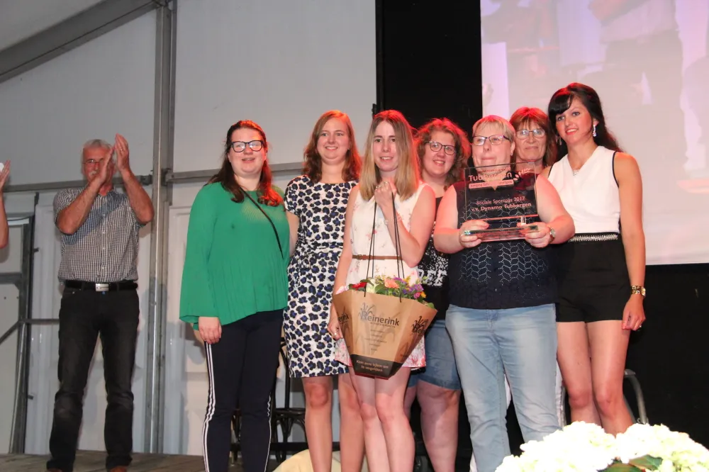 Loes Ritzen, voorzitster van de Sportraad Tubbergen, reikte namens de Sportraad de Sociale Sportprijs 2017 uit aan volleybalvereniging Dynamo uit Tubbergen. Wout Gehring reikte de publieksprijzen uit aan Eslie Wissink en Jolly Jumpers VU-18. Beiden waren zichtbaar blij met deze prijs.