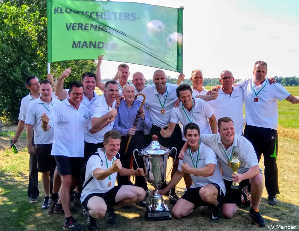 KV Mander heeft afgelopen zondag historie geschreven door de KTO-cup voor het onderdeel veld te winnen als gastteam. De KTO-cup is een wedstrijd volgens afvalsysteem waar verenigingen van de afdeling KTO (Kloatscheeters Twente Oost) aan mee kunnen doen. KV Mander, lid van de afdeling Noord-Twente, mocht dit jaar voor het eerst meedoen en wist gelijk de cup met de grote oren mee naar huis te nemen. De finale werd gegooid op de veldbaan van KV Lemselo.