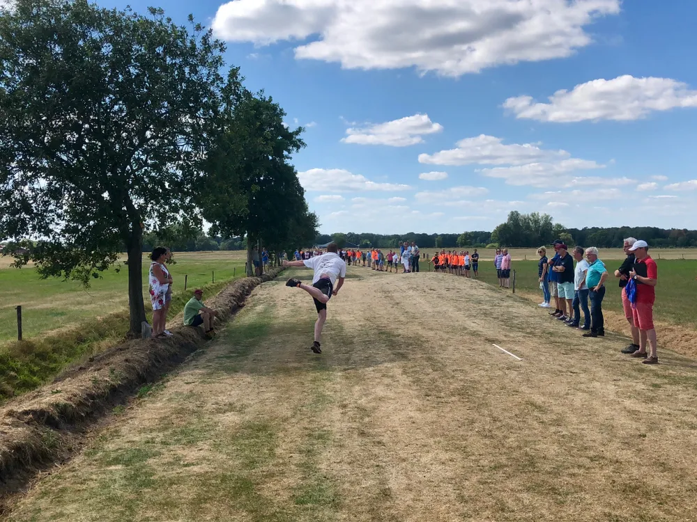 Nadat beide teams voor de tweede keer het keerpunt hadden bereikt lag Mander een kleine 15 meter voor. Wederom was Robert Meijer aan zet voor zijn derde schot van de wedstrijd. Hij gooide wederom een eind door de lucht en ook dit schot viel perfect. In de bocht mocht René Blankenvoort nog een keer zijn kunsten vertonen en plaatste zijn kloot perfect op het veld.