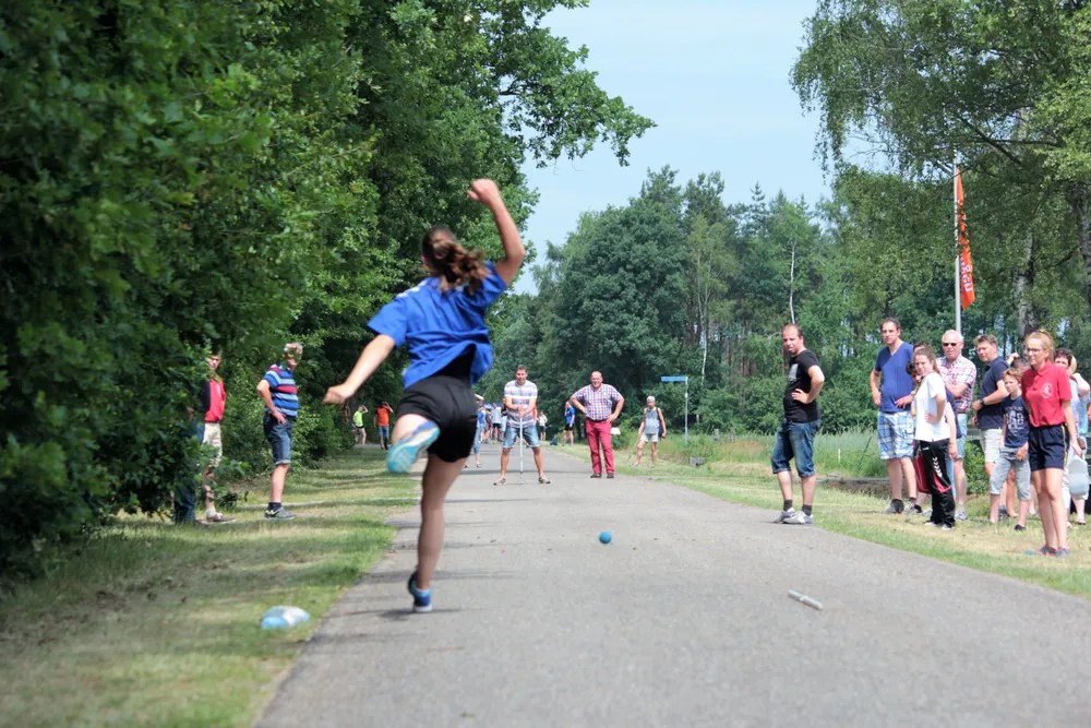 Normaal spelen de klootschieters niet met veel publiek langs de kant, maar tijdens een NK is dat totaal anders. Zowel naast het veld als langs de straat staan mensen om de verrichtingen van de jeugd te bekijken.