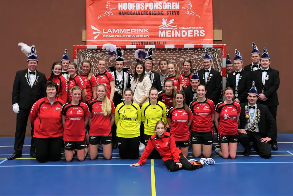 Als klapstuk werd HV Stevo verrast doordat Marine haar shirt, waarin ze gespeeld heeft tijdens het WK in Denemarken, cadeau gaf aan de vereniging en overhandigde aan voorzitter Rinie Bekhuis. Hierna werden de speelsters van Dames 1 succes gewenst bij hun wedstrijd tegen de nummer 1 van de Tweede Divisie, Eurobottle Voorwaarts uit Twello. Dit met de lijfspreuk van de hoogheden: Ne echt'n Papsleef scoort altied.