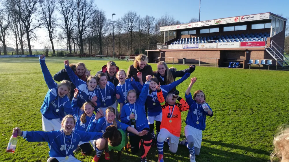 De goden, aanmoedigingen van hun zenuwachtige ouders of 'gewoon' een fantastische teamprestatie? Waar het aan lag dat het Meisjes D-team van TVC'28 zich sinds gisteren - na een zeer zwaarbevochten zege in Daarle - kampioen mag noemen, is nog steeds niet duidelijk. Helder is wel dat het op een bijzondere wijze tot stand kwam.
