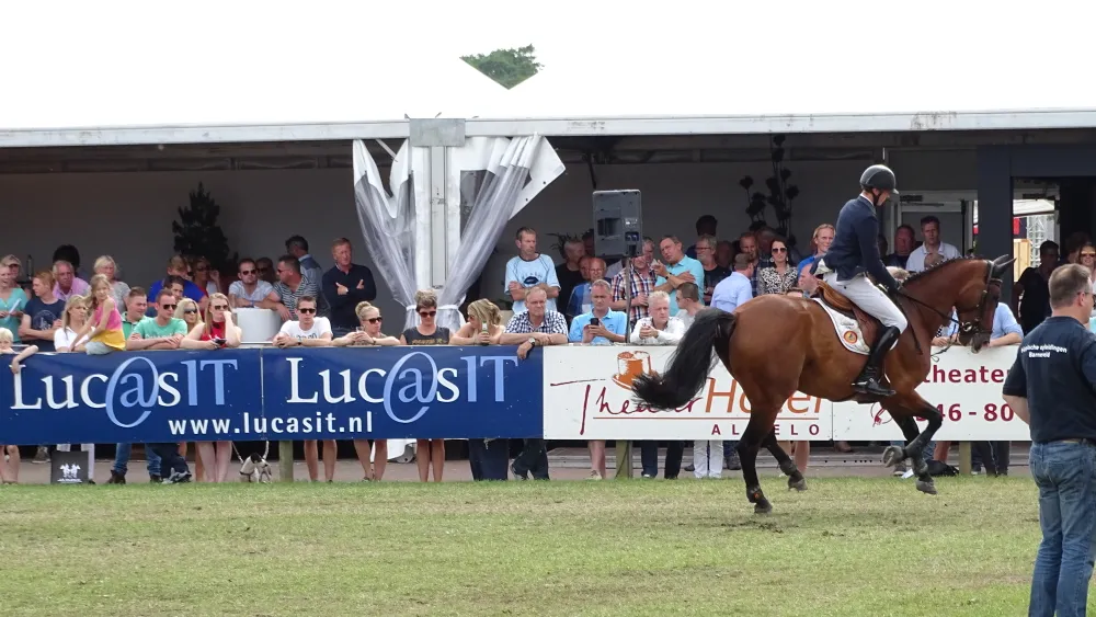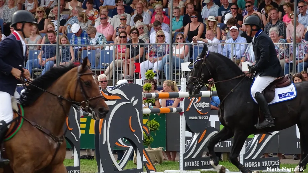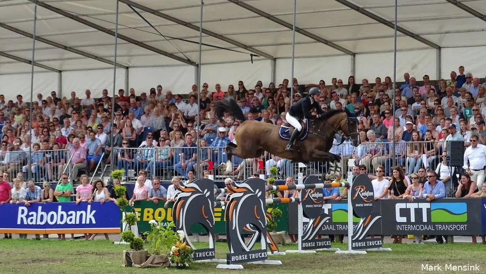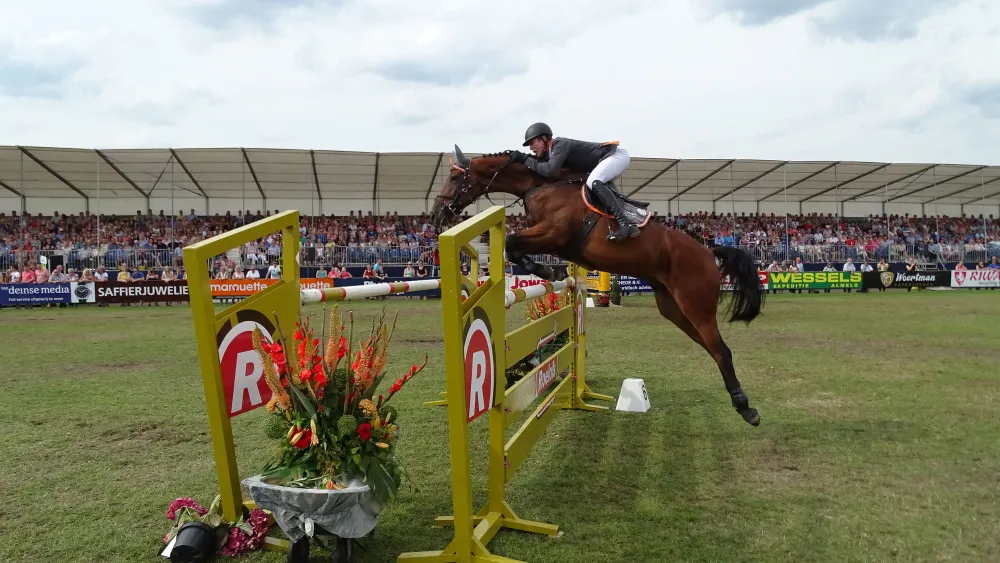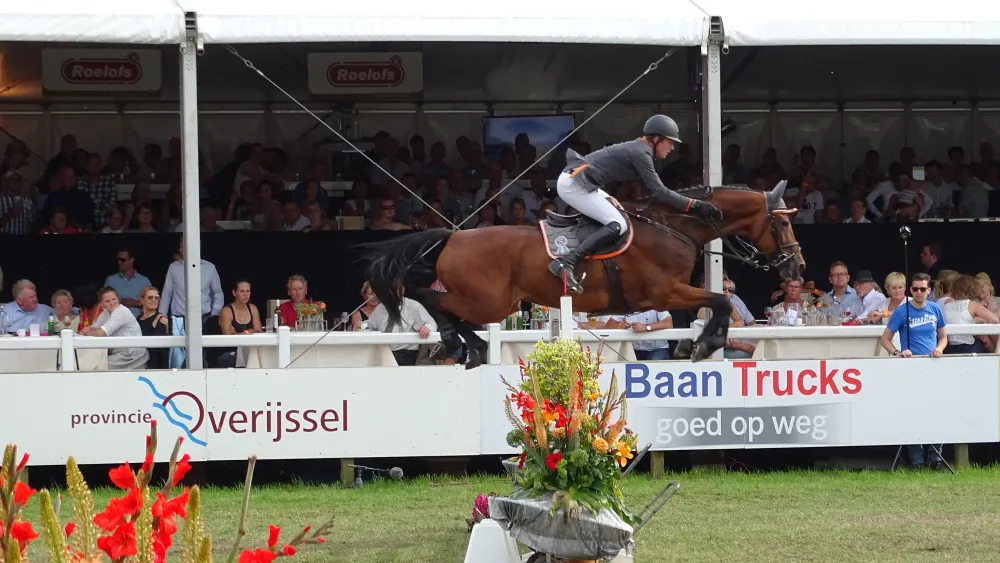 Niet 1 van de liefst 22 Nederlanders die streden om de Grote Prijs van Twente, maar Philip Rüping uit Duitsland bleef met Copperfield 40 in de barrage foutloos en bleek de snelste met 37.97 seconden.