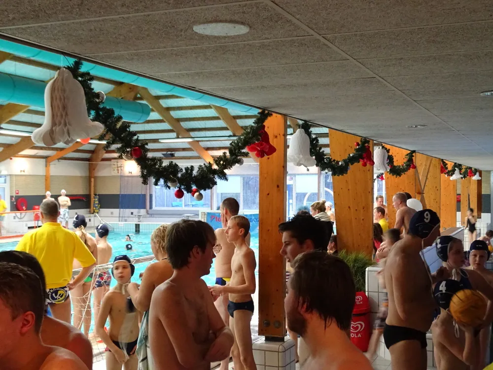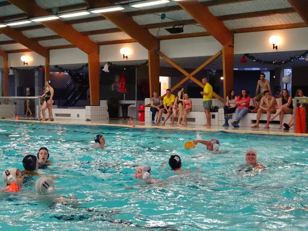 Het ging er fanatiek aan toe, waarbij de ouders toch wel respect kregen voor de allerjongsten. Waar de kinderen nog lekker doorzwommen, hingen hun ouders aan de zwembadrand om toch nog enige houvast te vinden. Bij de senioren ging het er wat harder aan toe en op allerlei slinkse manieren probeerde men elkaar te slim af te zijn. Zowel onder als boven water werden de waterpolotrucjes uit de kast getrokken om zo de winst binnen te slepen.