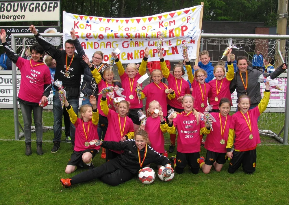 Het was zaterdag een historische dag bij de STEVO-jeugdafdeling. F6, C3, D4 en Meisjes E1 werden kampioen. En alsof dat nog niet genoeg was, wist ook nog B1 de KNVB beker te winnen door in de finale Eibergen B1 met 3-2 te verslaan. Nooit eerder was de Geesterse voetbalclub zo succesvol op één dag.