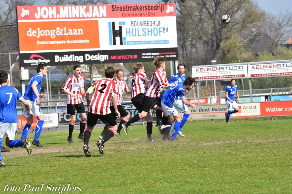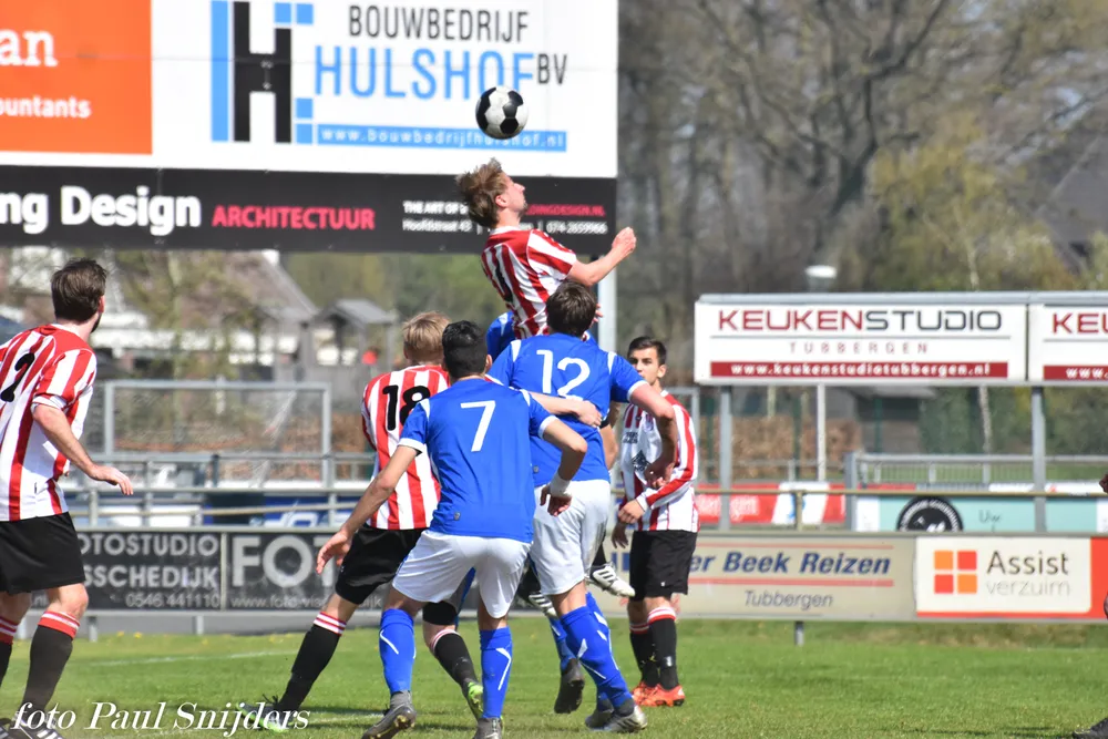 In de thuiswedstrijd tegen koploper Quick'20 2 leek er een stunt in de maak. Voor rust zorgden Carlo Stroot, Thomas Tijhuis en Tim Waaijer voor een verrassende 3-0 voorsprong. Na rust was de ploeg uit Oldenzaal scherper. In een periode van 25 minuten wist het de achterstand om te buigen naar een 3-4 voorsprong. De thuisploeg was niet bij machte om het tij te keren en stond na 90 minuten met lege handen. Volgende week komt hoogvlieger DCS op bezoek in Tubbergen. Om 11.15 wordt er afgetrapt.