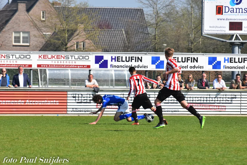 In een gelijkopgaande wedstrijd kregen beide teams genoeg kansen op de openingstreffer maar voor rust werd er niet gescoord. Na rust hetzelfde spelbeeld maar uiteindelijk was het Stef Oosterik die de wedstrijd besliste met een knappe schuiver.