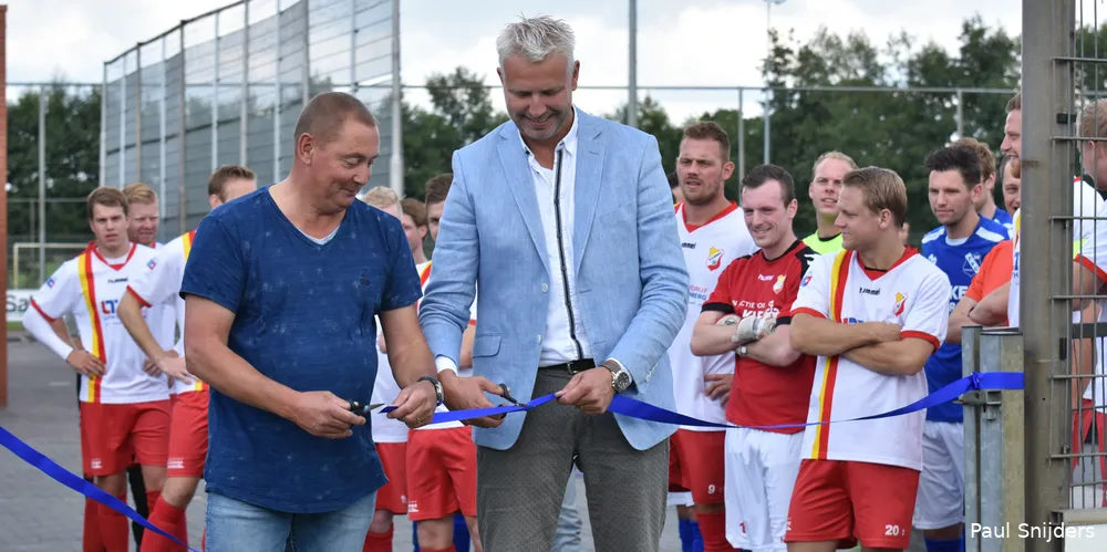 Met het doorknippen van een lint door Rudy Bekhuis en Richard Geelen, namens beheerstichting De Grote Moat, heeft vanmiddag de symbolische overdracht plaatsgevonden van het nieuwe kunstgrasveld dat voetbalvereniging TVC'28 heeft aangelegd.